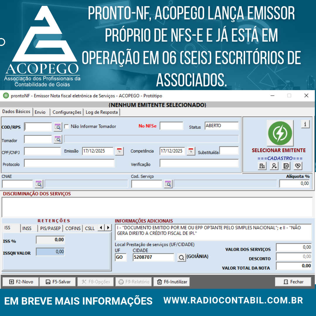 A ação reafirma a política da atual gestão de não apenas representar, mas também prover ferramentas de ponta e suporte direto aos profissionais da contabilidade associados da ACOPEGO. O sistema PRONTO-NF segue sendo disponibilizado progressivamente, assegurando que a tecnologia de emissão de NFS-e seja um diferencial acessível a todos os filiados da Acopego.